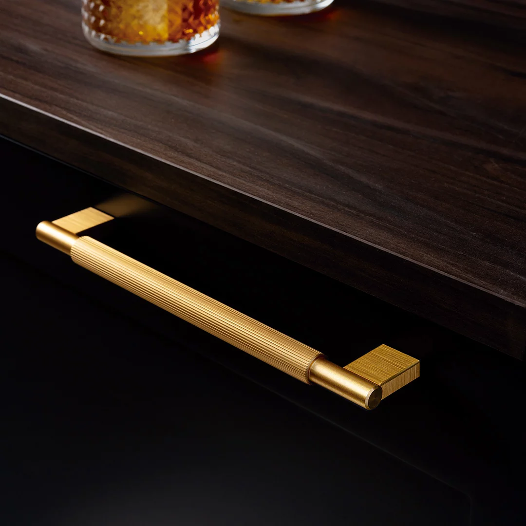 Ge ditt hem en touch av lyx med våra skräddarsydda Handtag Arpa-192 i utförandet Mässing.